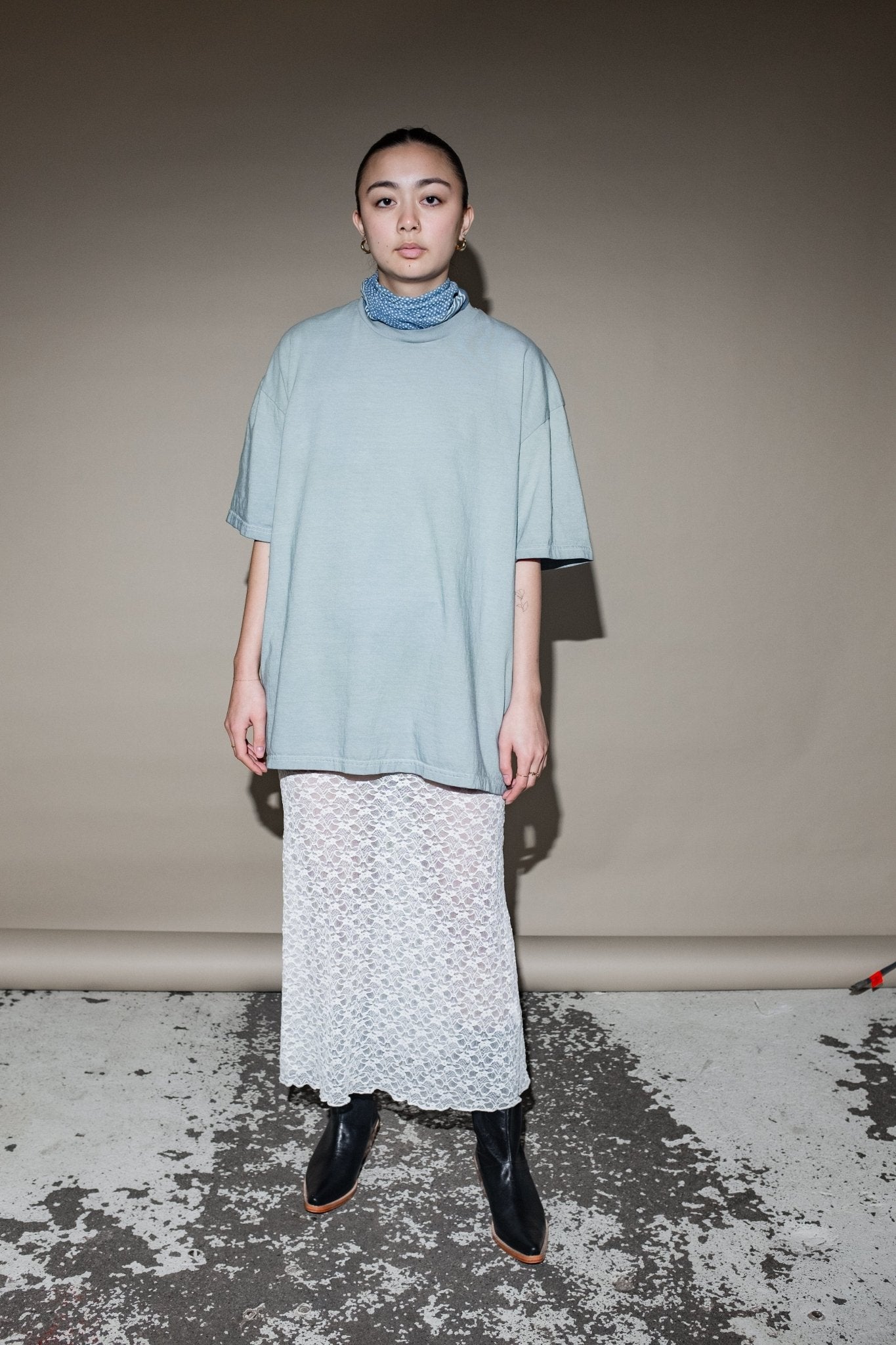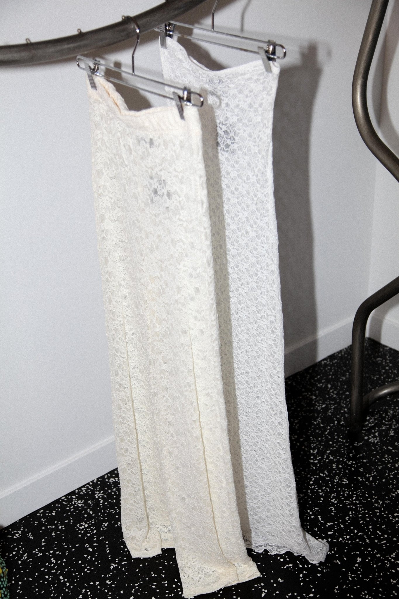 Strapless knit dress with lace. Made of 80% Nylon 20% Spandex.