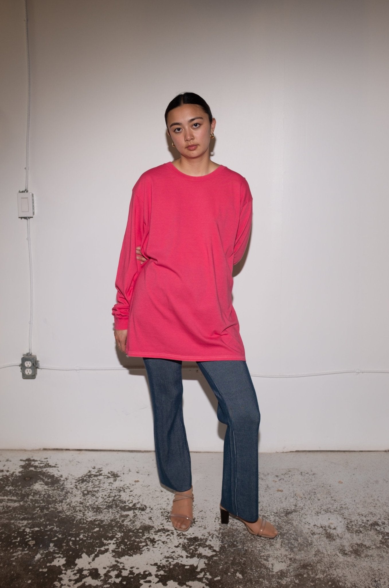 Jayme is wearing size S. She is 5'6" with a 28” waist.