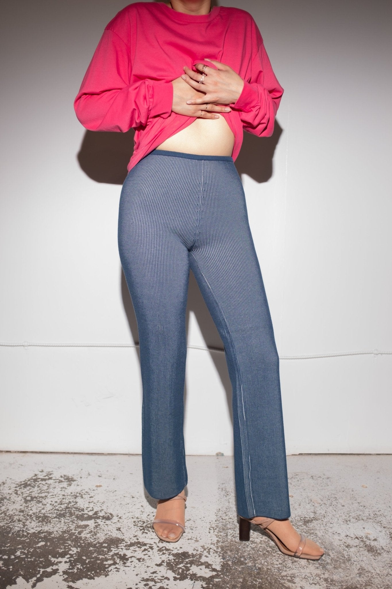 Harris Knit Pant in Blue + White Rib