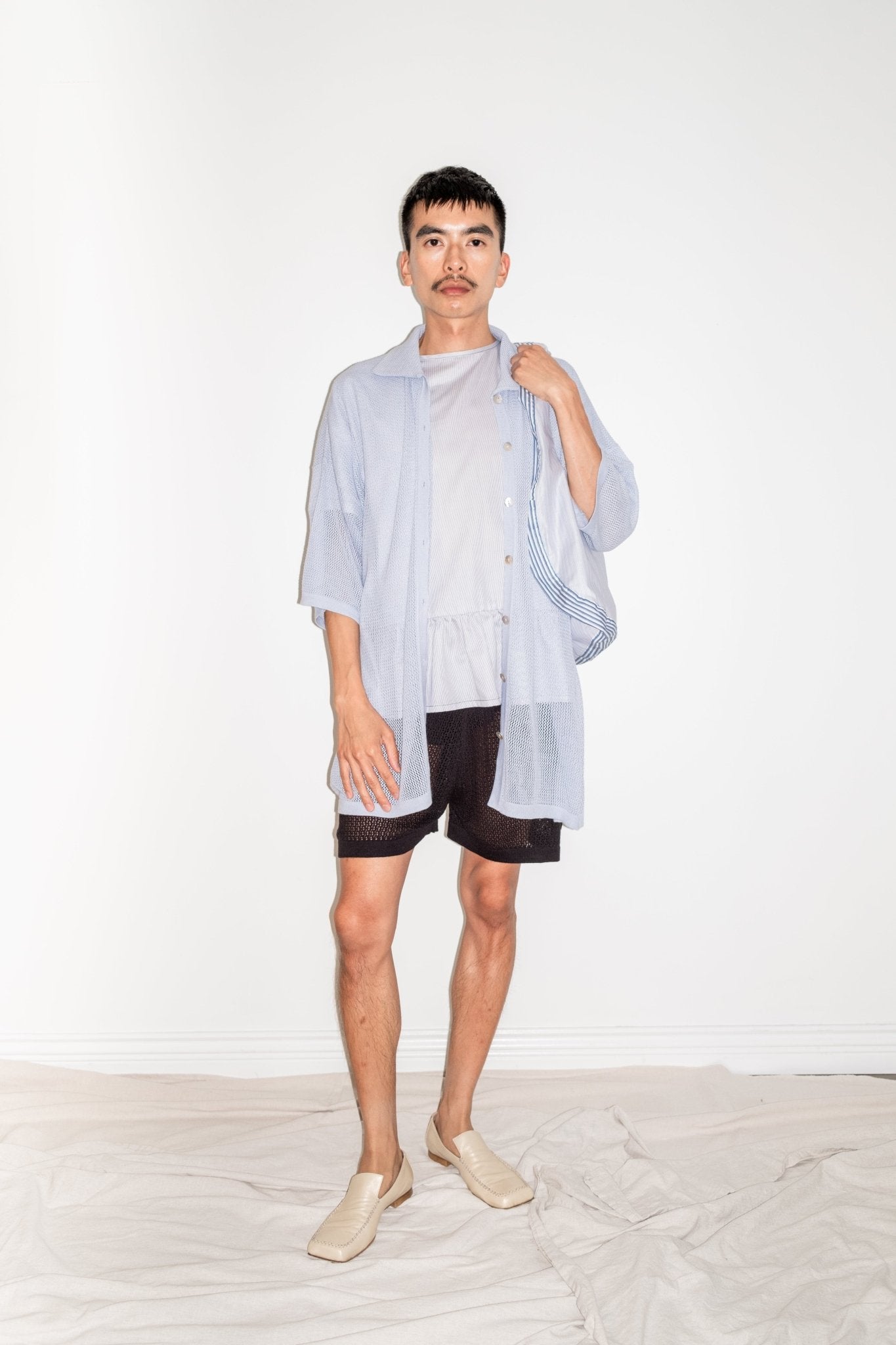 Knit shorts with elastic waist and drawstring cord. Made of 50% Tanguis Cotton and 50% Viscose.