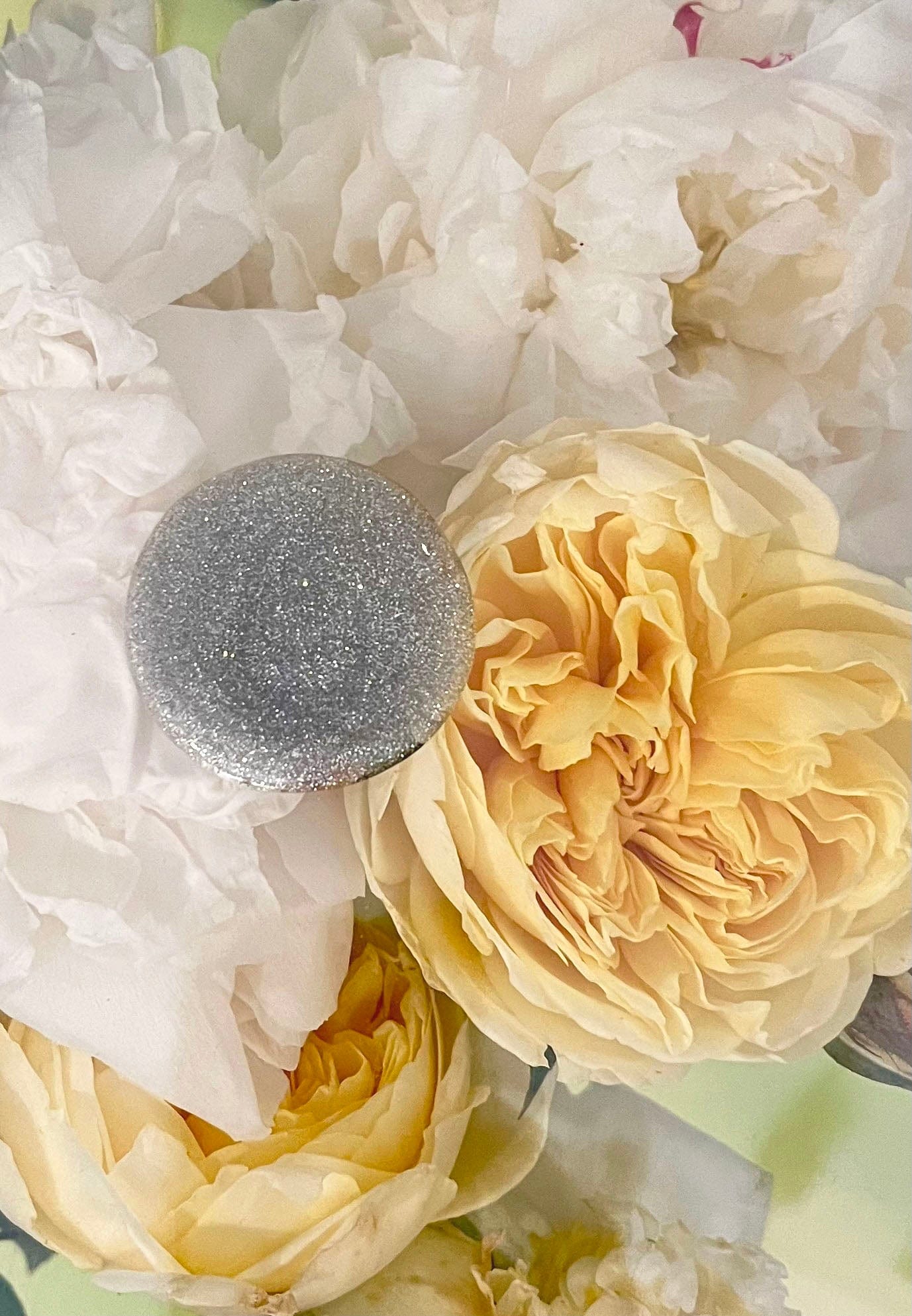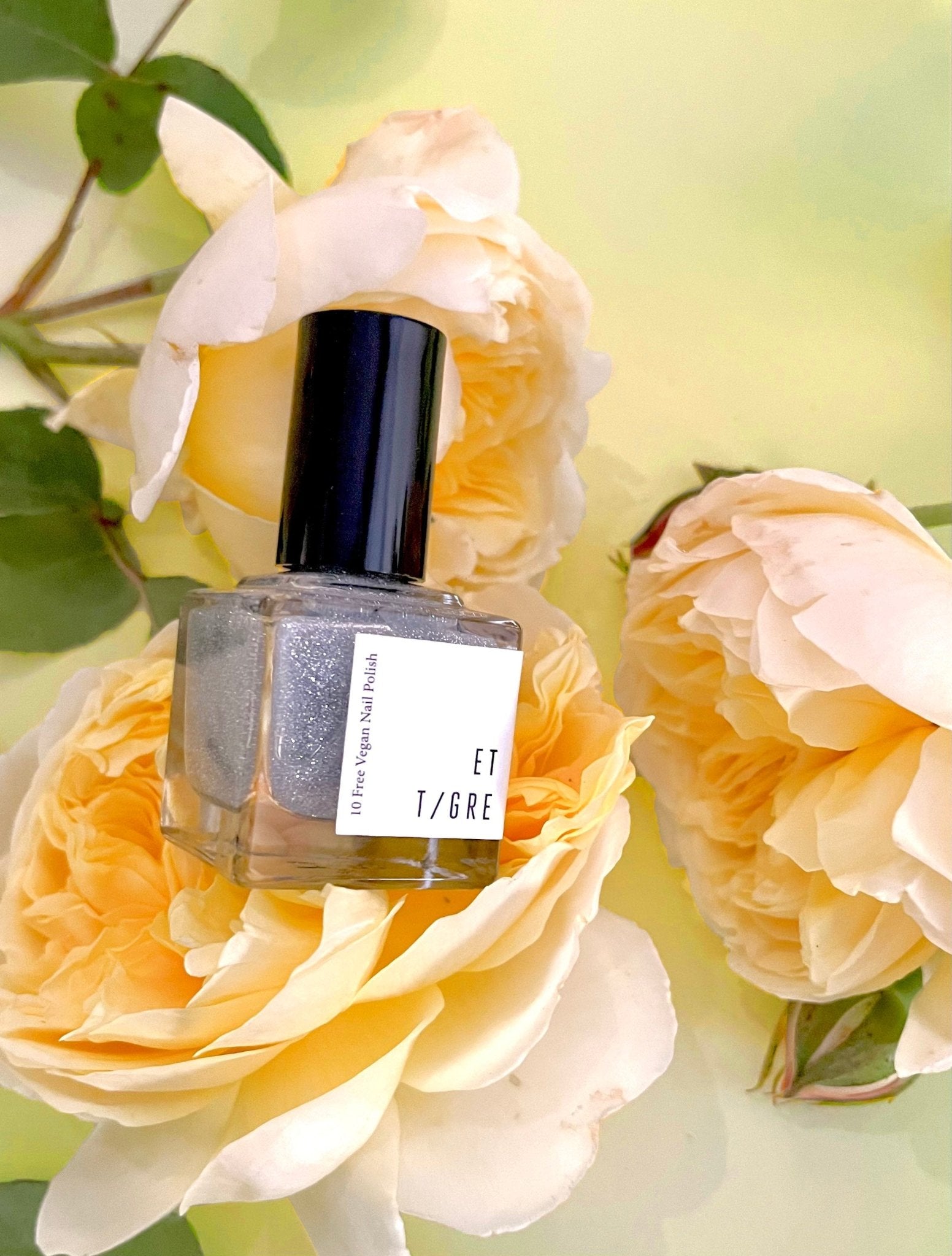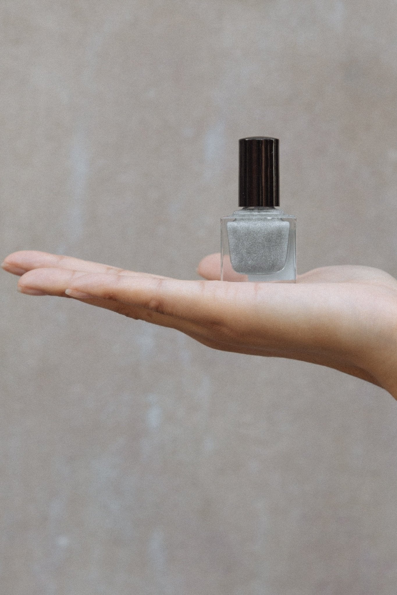Glitter, glitter, gitter, glitter. 10-free glitter nail polish in silver.