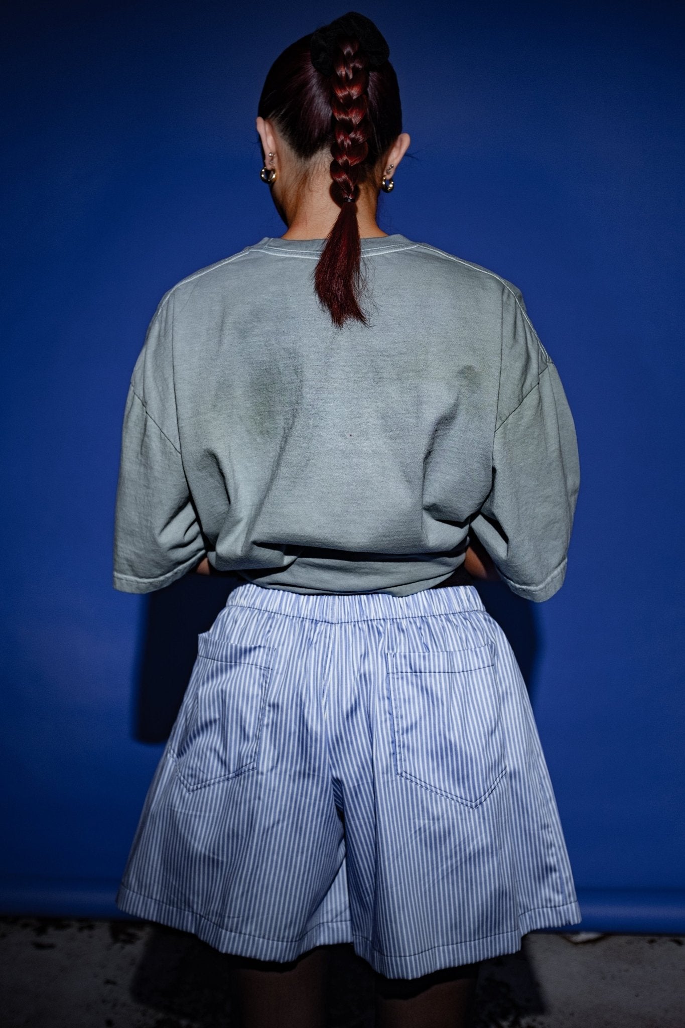 Oversized boxer shorts with back pocket detail. Mid-thigh length. Relaxed leg. 100% Cotton. Can be worn at home or going out.