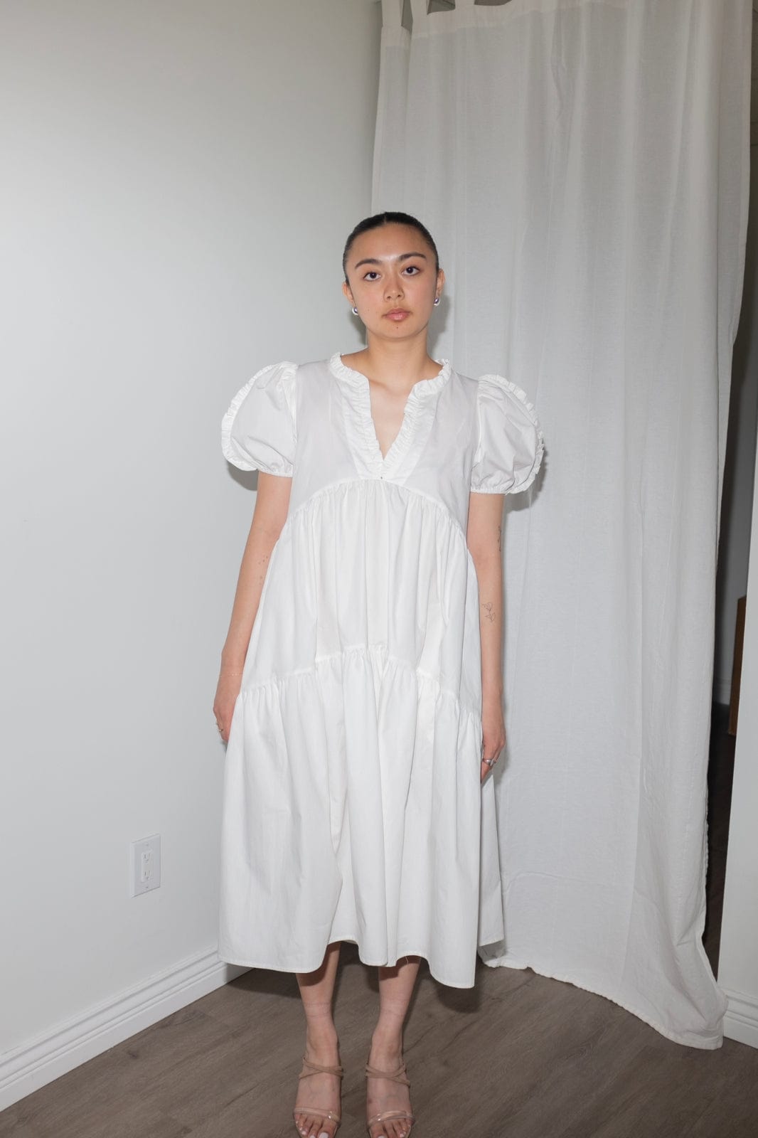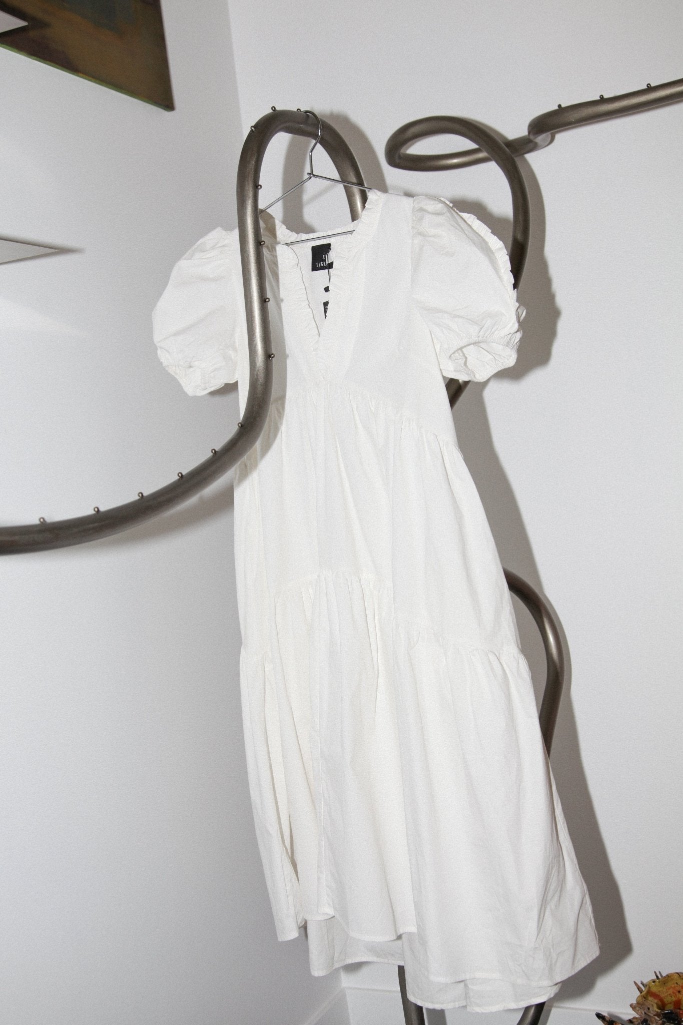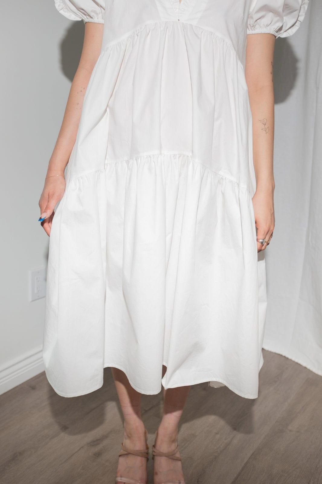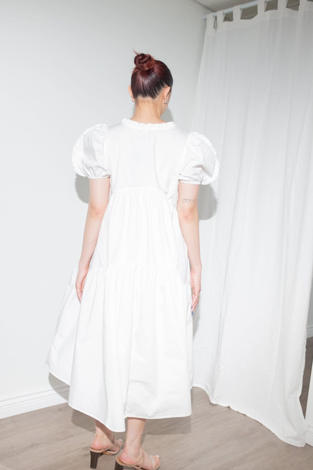 Puff sleeve midi dress with simple shirring details. Made of 100% Cotton.