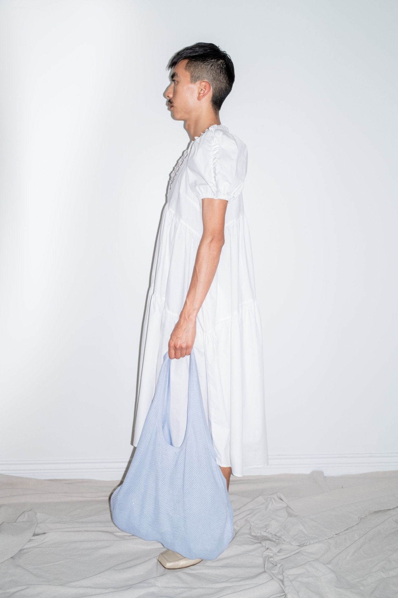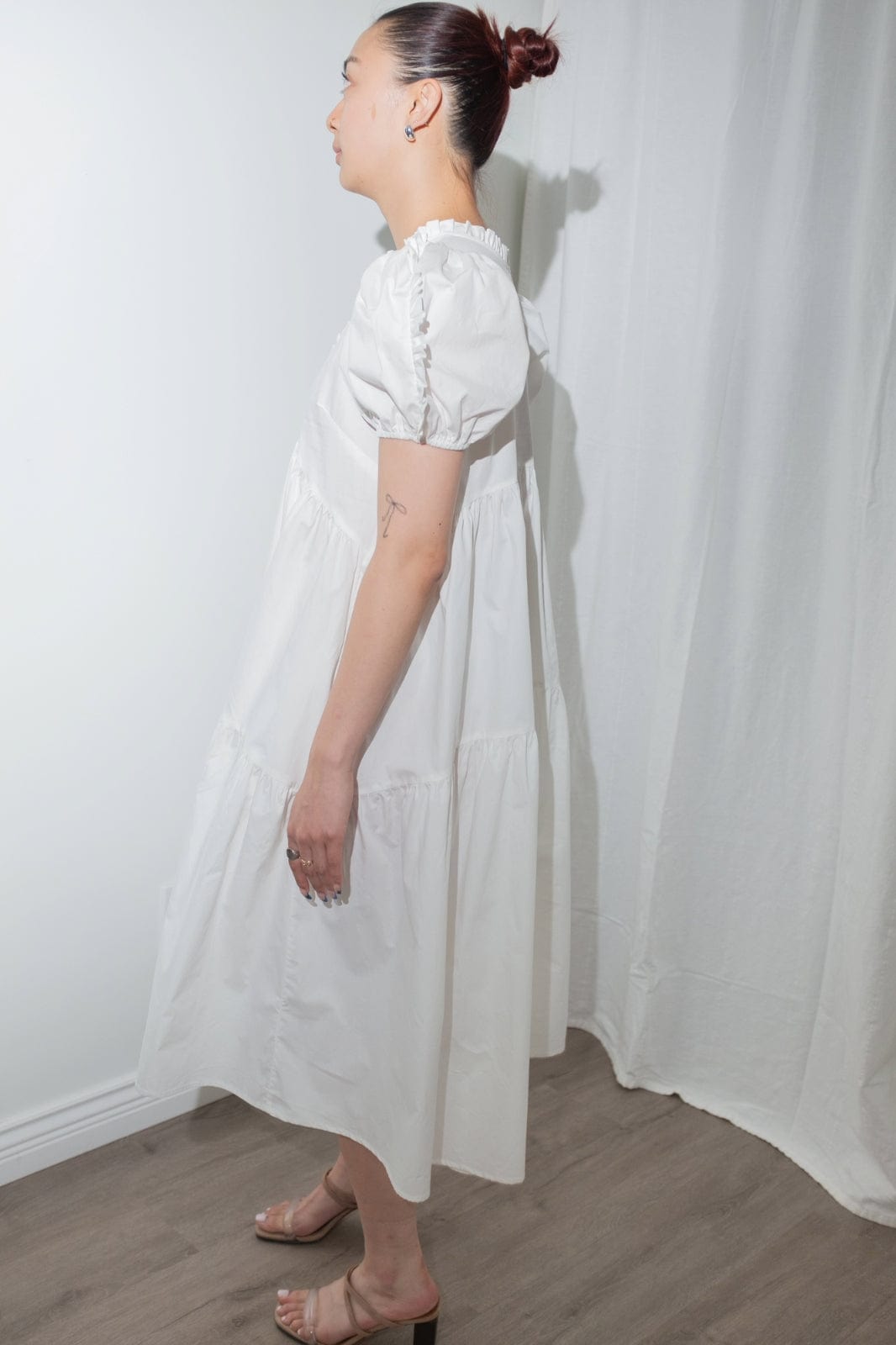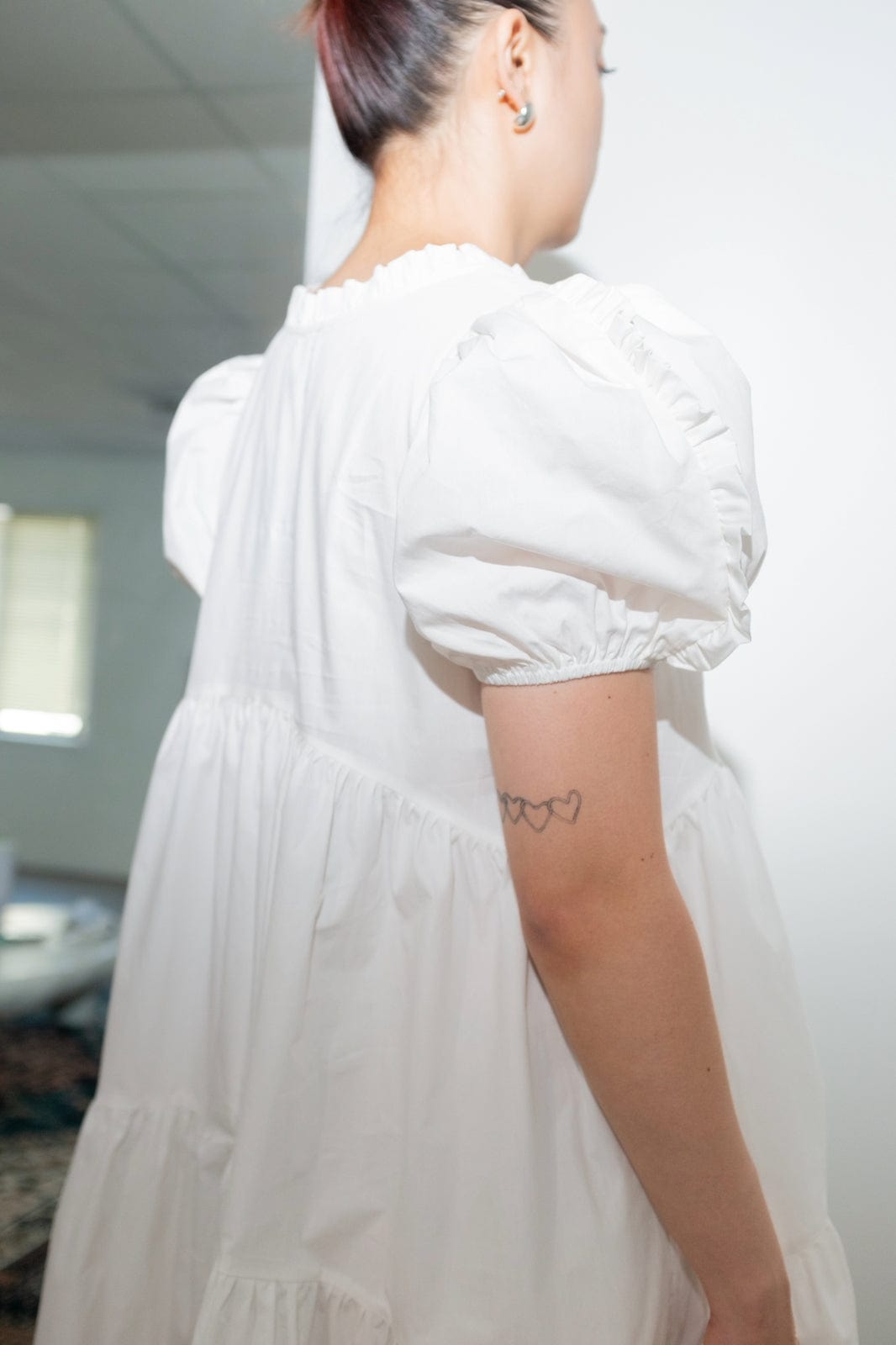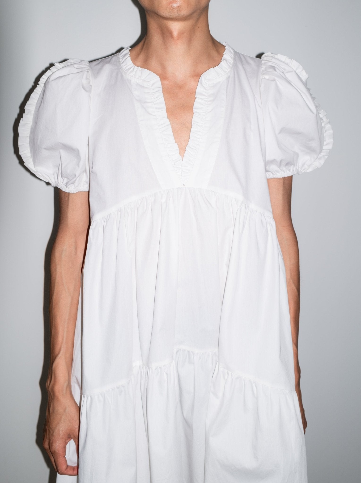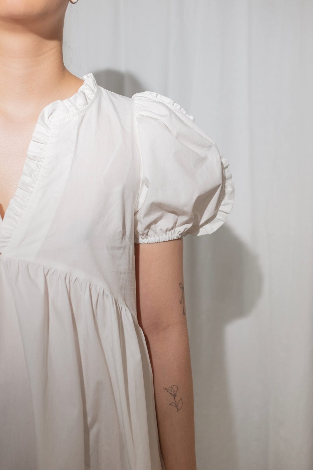 Puff sleeve midi dress with simple shirring details. Made of 100% Cotton.