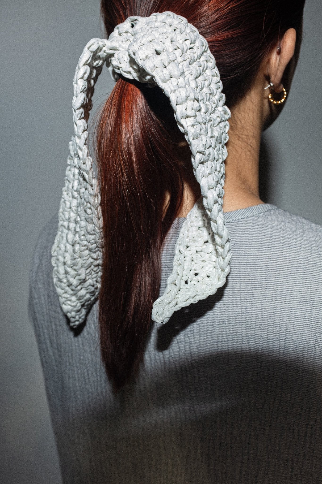 Hand crochet raffia hair tie. Made of 100% Polypropylene.