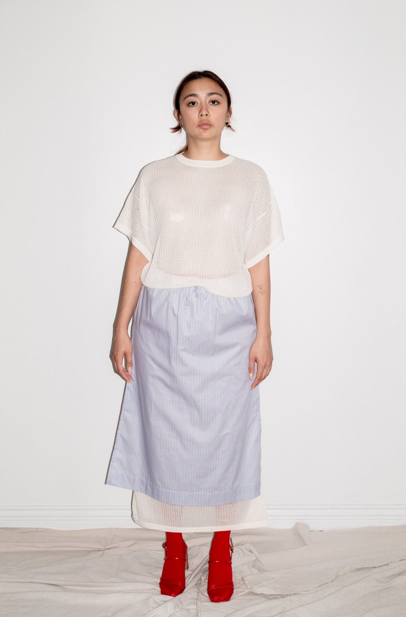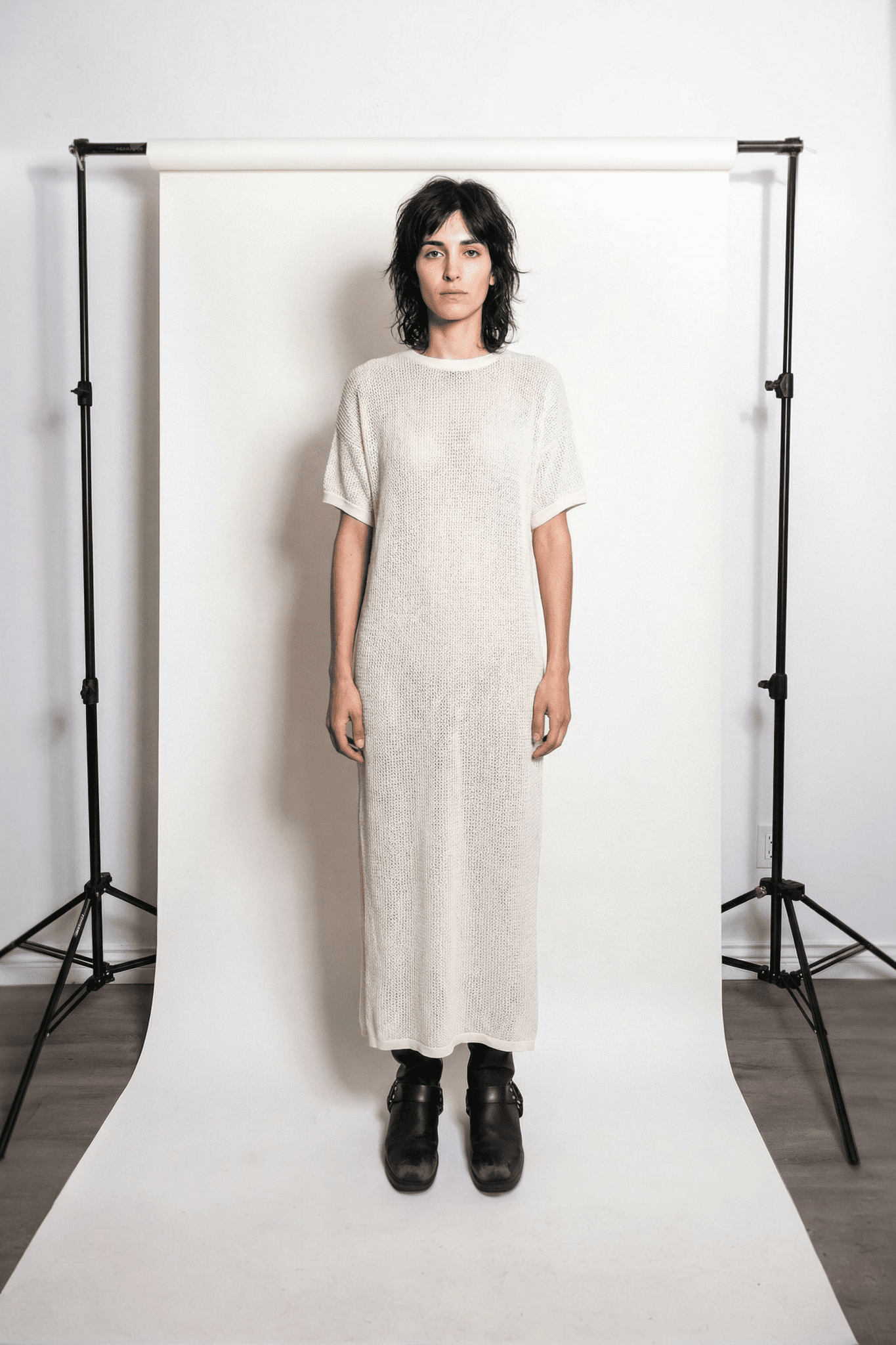 Short sleeve knit maxi dress. Made of 50% Tanguis Cotton and 50% Viscose.