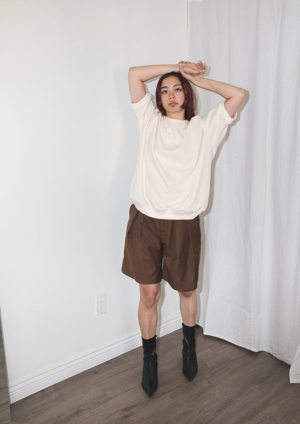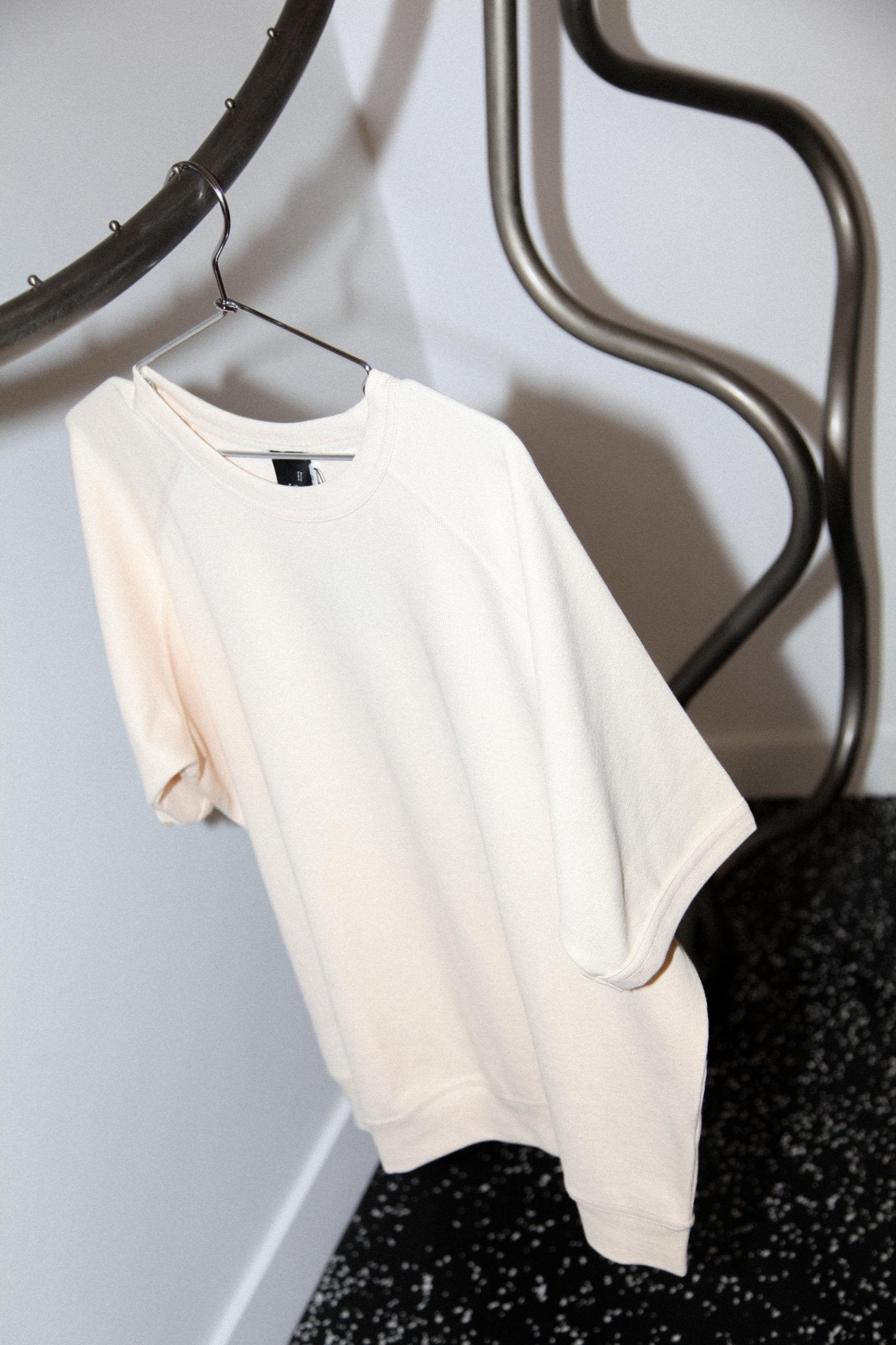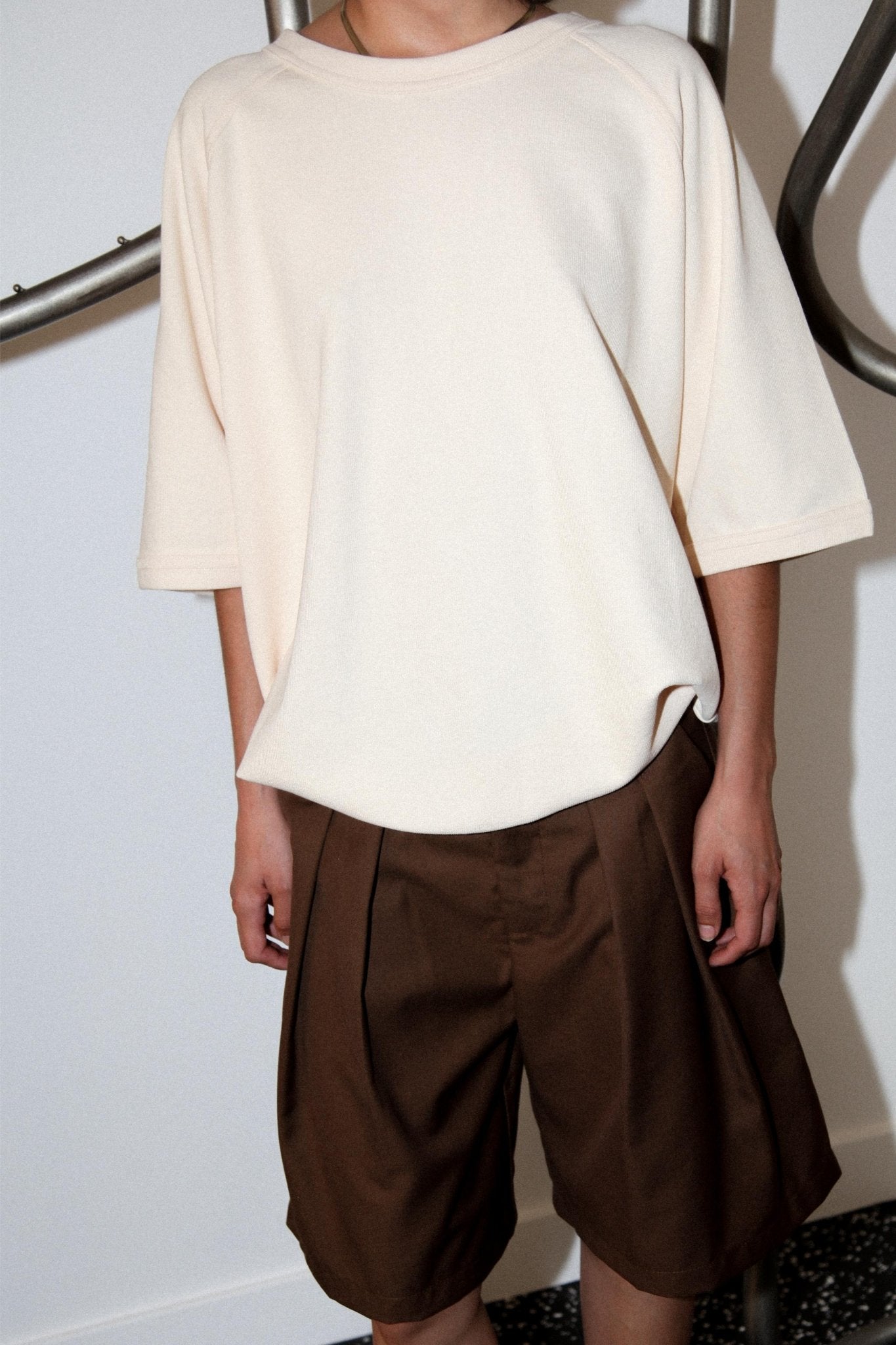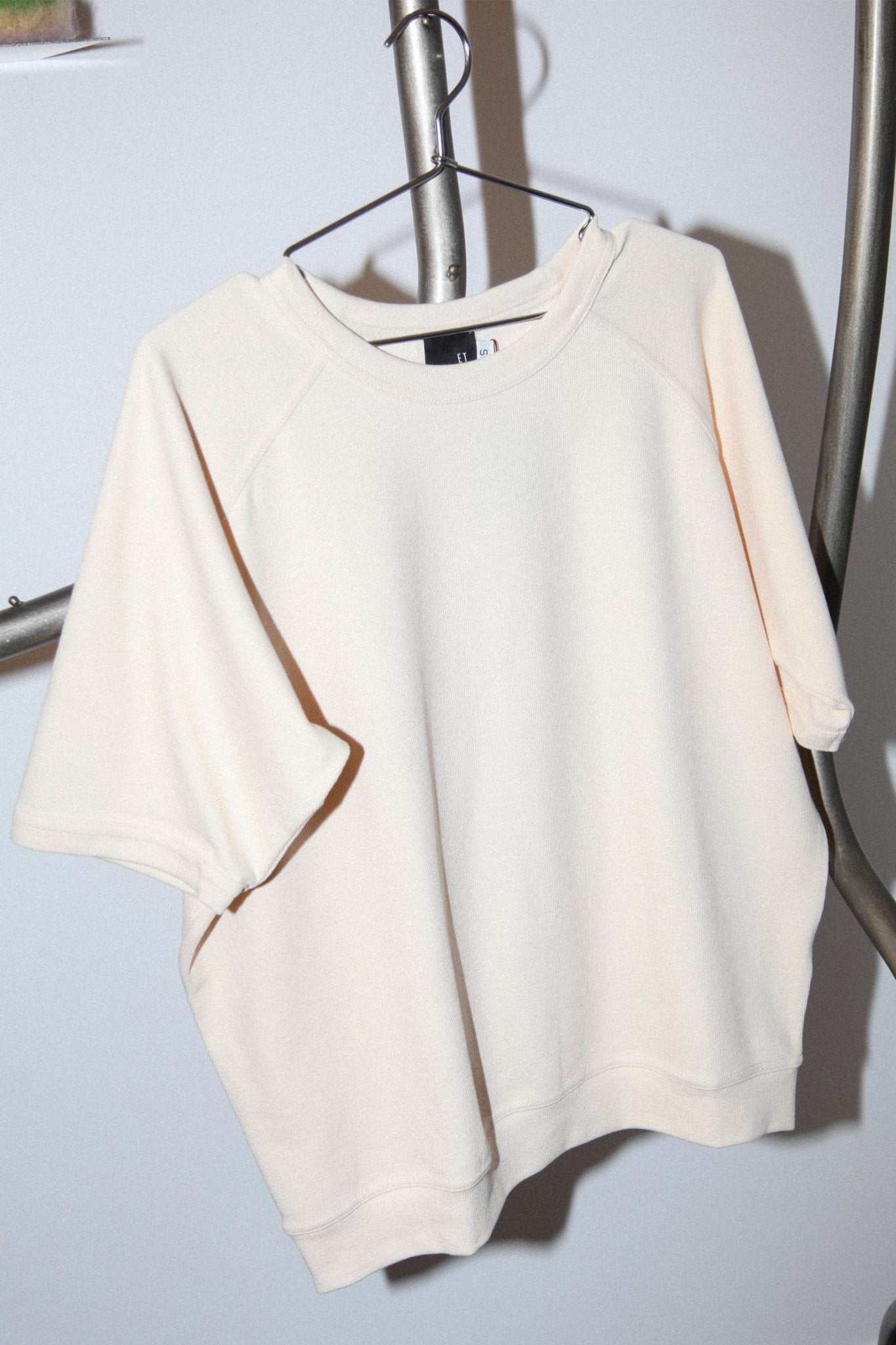 Relaxed fit knit sweatshirt with raglan short sleeves. Made of 55% Cotton 45% Polyester.
