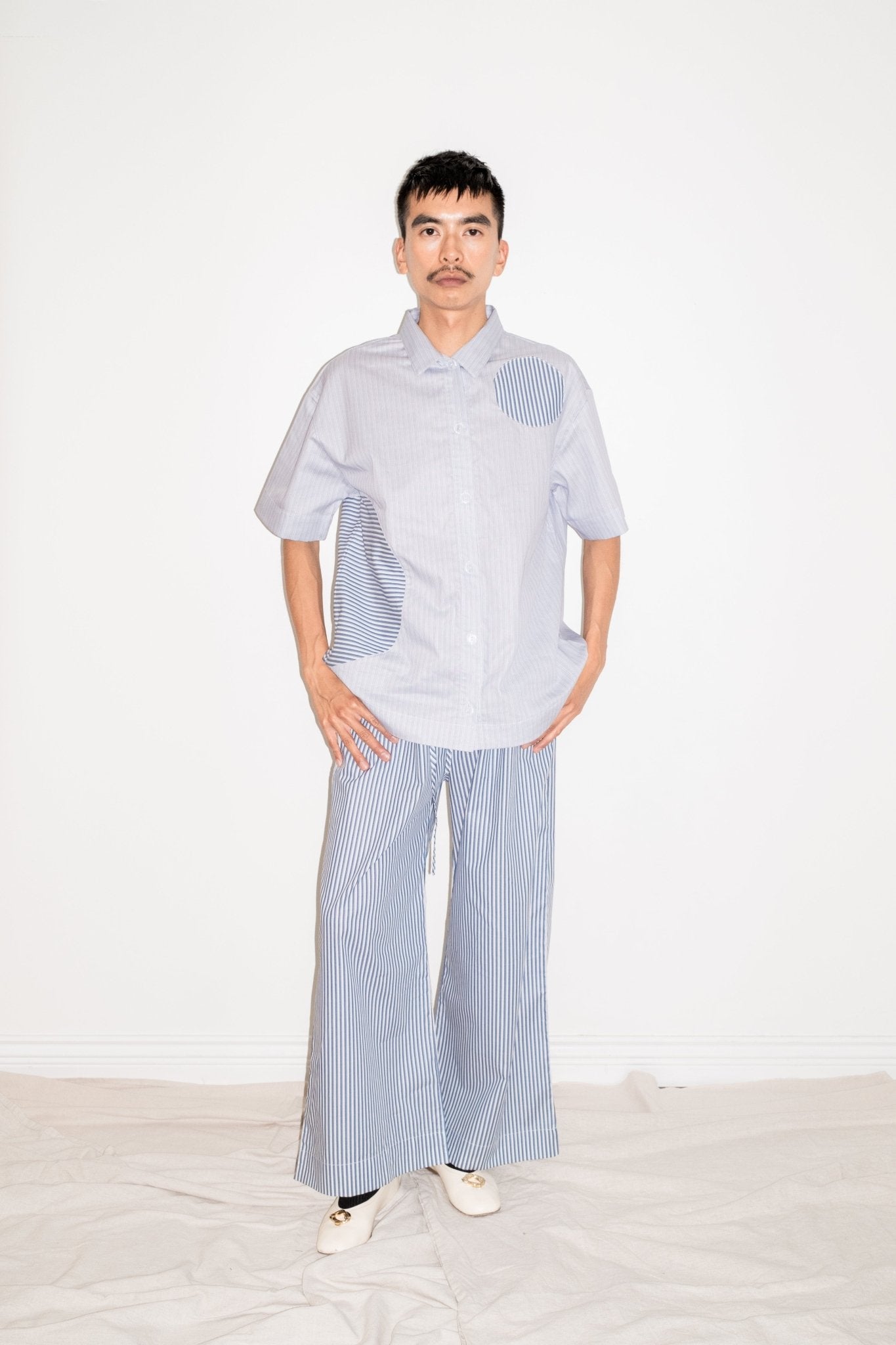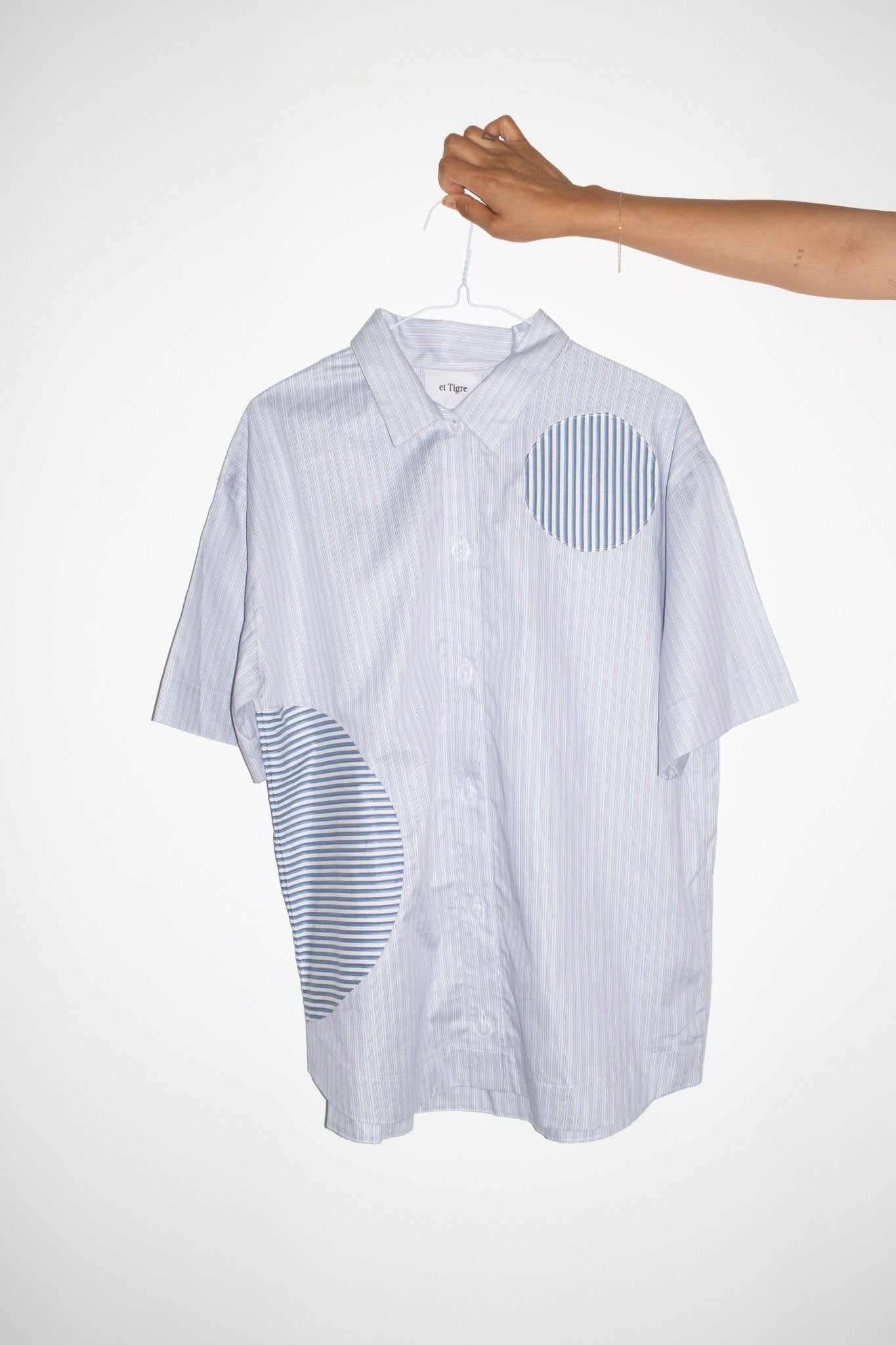 Button-up collared shirt with circle details. Made of 100% Cotton.