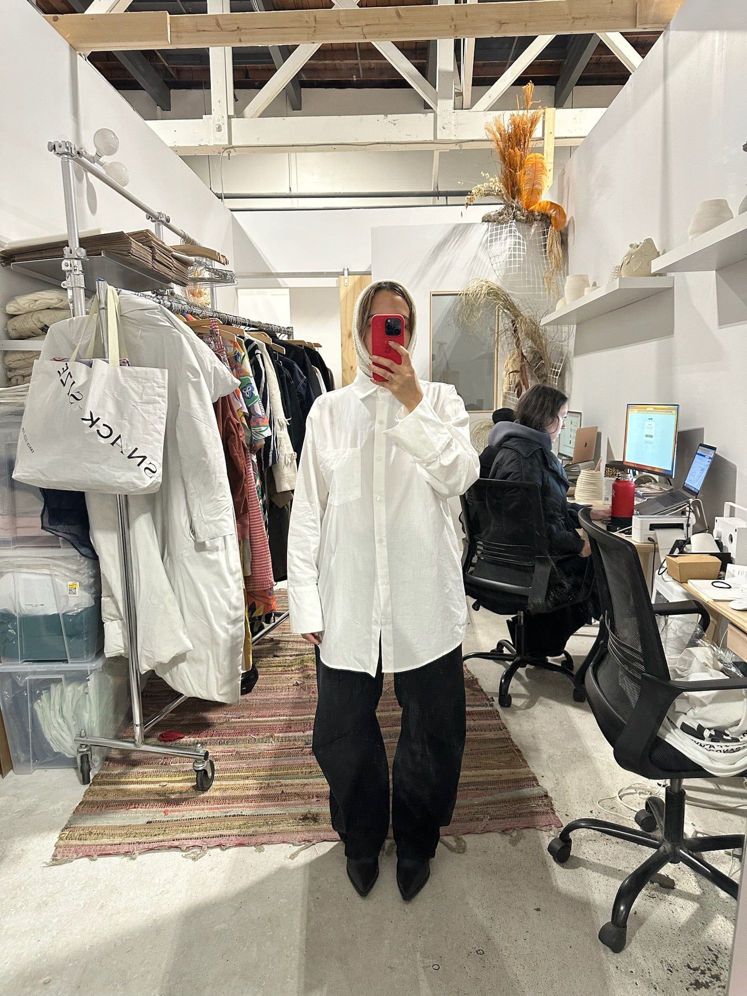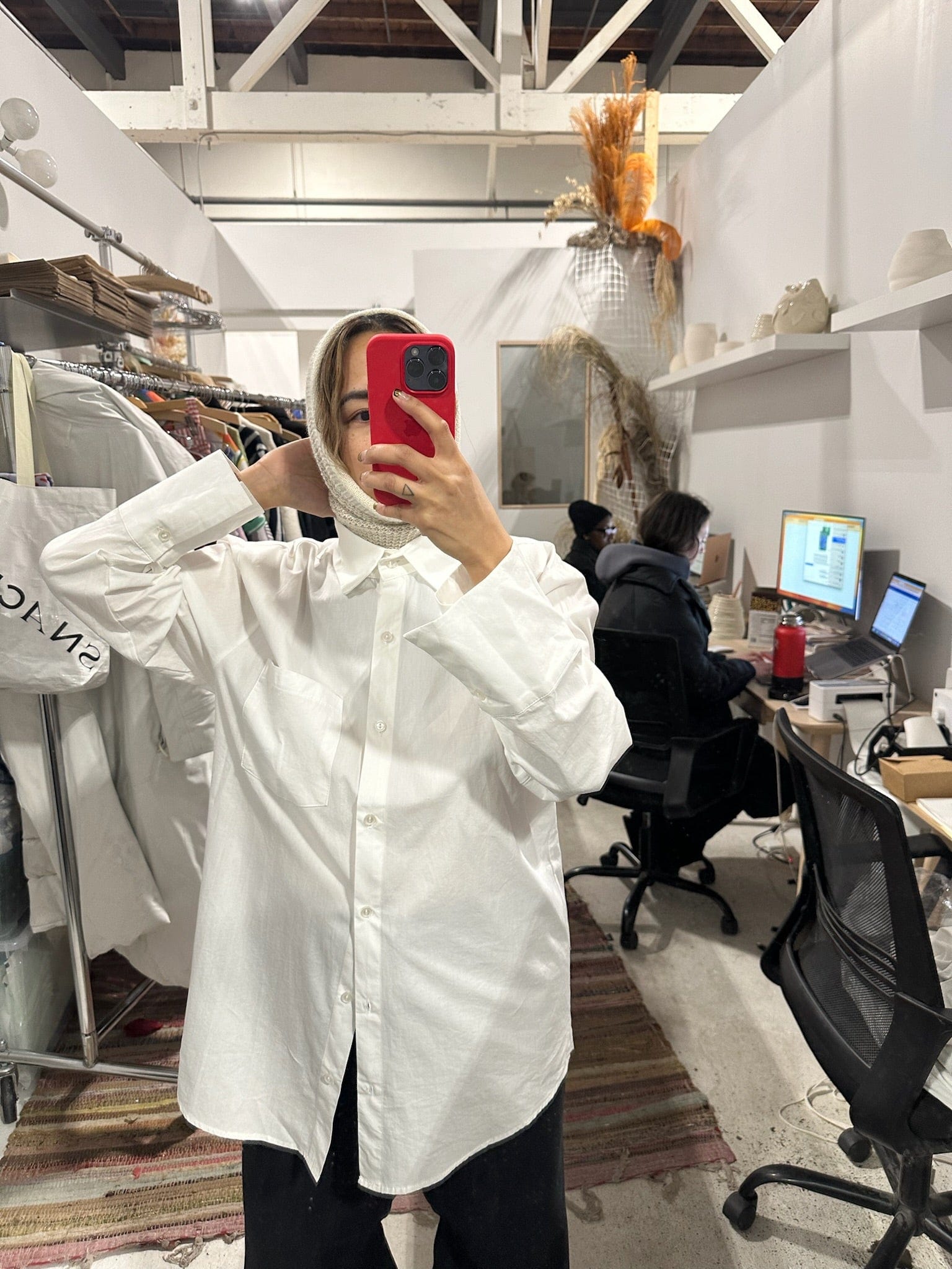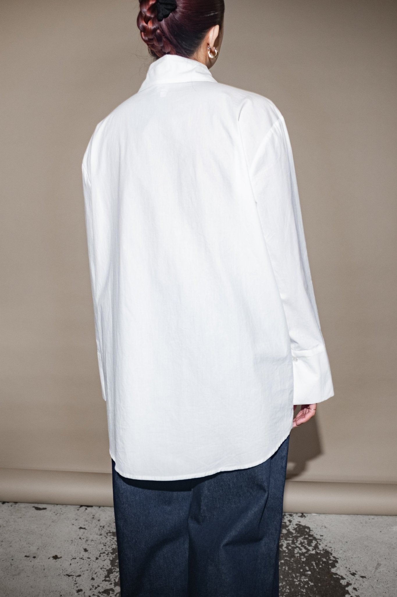 Oversized button down shirt with thick cuff details. Made of 100% Cotton.