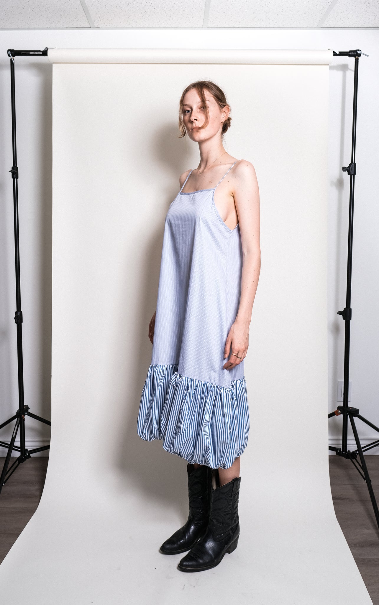 Bubble dress with spaghetti straps and square neckline. Made of 100% Cotton.
